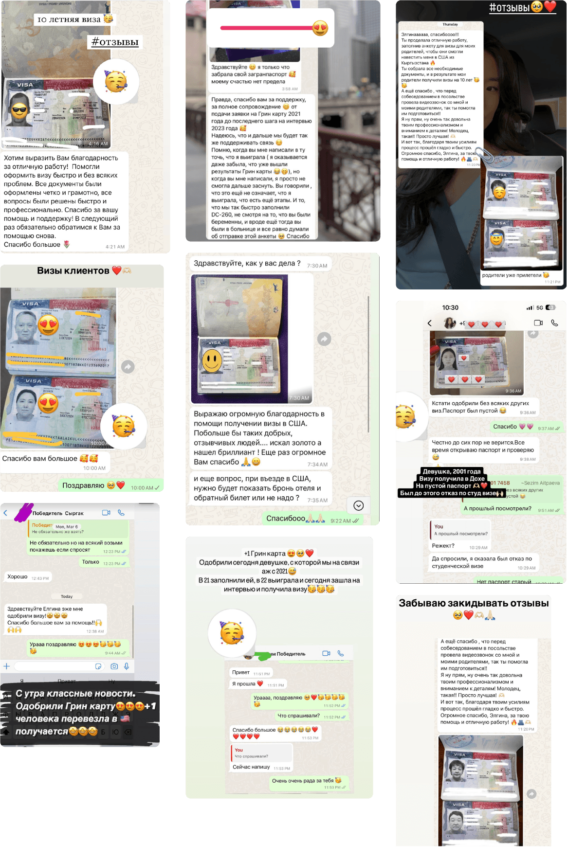 💼 Специализируясь на туристических визах, студенческих визах, Шенгенских визах в Европу и сопровождении выигравших в лотерее грин-карт 📄, я подробно разбираюсь в каждой уникальной ситуации моих клиентов, чтобы обеспечить им лучший шанс на успех. 🙋🏻♀️ Из личного опыта я знаю, насколько может быть сложной иммиграция, и именно поэтому я посвящаю себя тому, чтобы сделать этот путь как можно более гладким и понятным для вас.